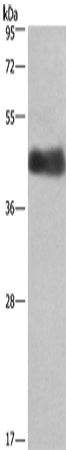 Western Blot analysis of Human placenta tissue using CALU Polyclonal Antibody at dilution of 1:400