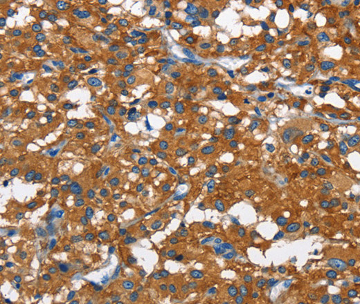 Immunohistochemistry of paraffin-embedded Human thyroid cancer tissue using CAMK1D Polyclonal Antibody at dilution 1:50