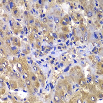 Immunohistochemistry of paraffin-embedded Human liver damage using CARD10 Polyclonal Antibody at dilution of 1:100 (40x lens).