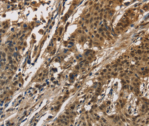 Immunohistochemistry of paraffin-embedded Human gasrtic cancer tissue using CCAR1 Polyclonal Antibody at dilution 1:40
