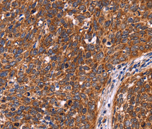 Immunohistochemistry of paraffin-embedded Human cervical cancer tissue using CCDC106 Polyclonal Antibody at dilution 1:60