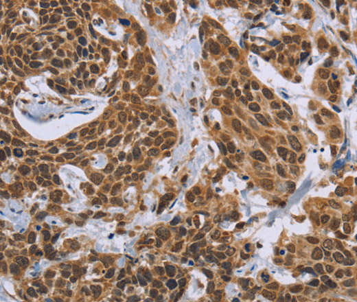 Immunohistochemistry of paraffin-embedded Human cervical cancer tissue using CCL21 Polyclonal Antibody at dilution 1:40