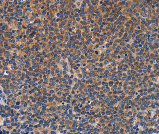 Immunohistochemistry of paraffin-embedded Human Lymphoma tissue using CCL23 Polyclonal Antibody at dilution 1:50