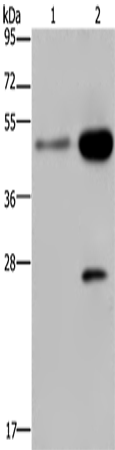 Western Blot analysis of 231 and Hela cell using CD160 Polyclonal Antibody at dilution of 1:300