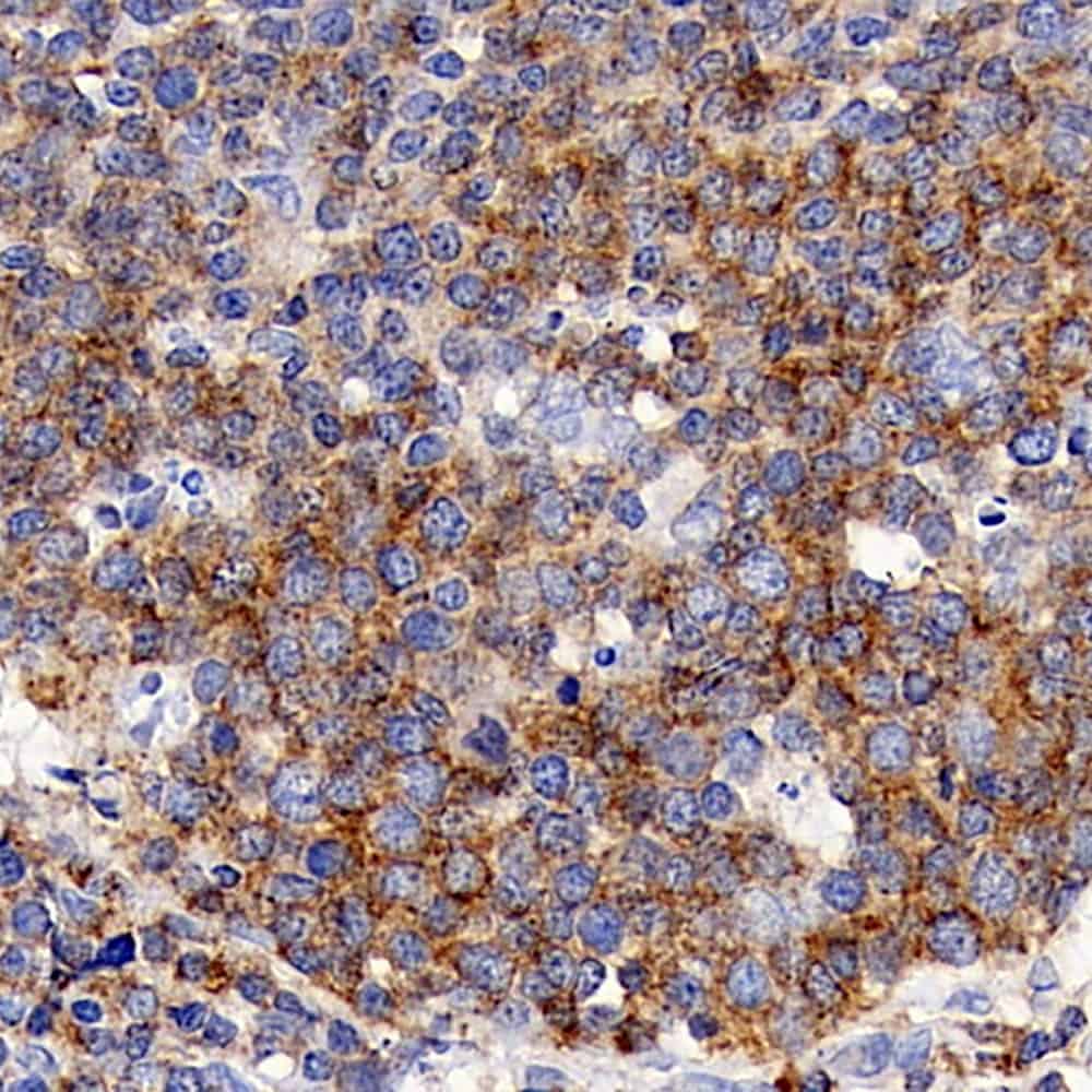 Immunohistochemistry analysis of paraffin-embedded human tonsil using CD192 Polyclonal Antibody at dilution of 1:300.