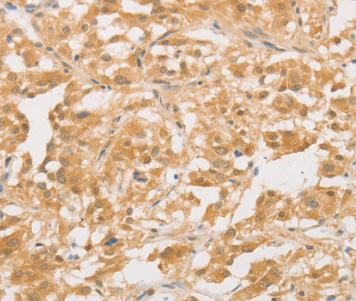 Immunohistochemistry of paraffin-embedded Human thyroid cancer tissue using CD24 Polyclonal Antibody at dilution of 1:40