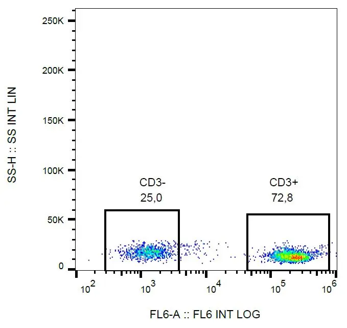 FACS analysis of human peripheral blood using GTX78244 CD3 antibody [MEM-57] (Biotin).