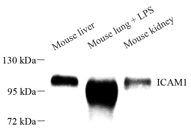 Western Blot analysis of various samples using CD54 Polyclonal Antibody at dilution of 1:1000.