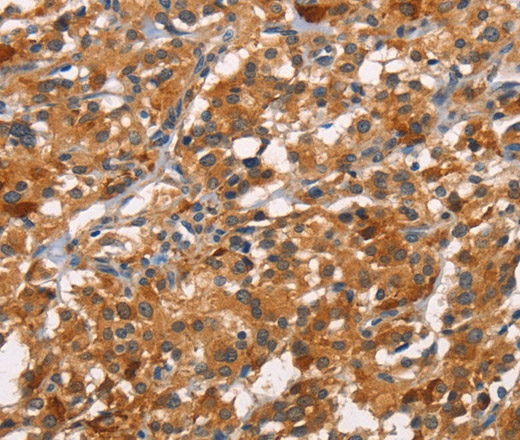 Immunohistochemistry of paraffin-embedded Human thyroid cancer tissue using CDC25B Polyclonal Antibody at dilution 1:45