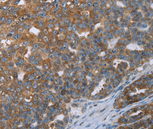 Immunohistochemistry of paraffin-embedded Human ovarian cancer tissue using CERS4 Polyclonal Antibody at dilution 1:35