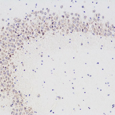 Immunohistochemistry analysis of paraffin-embedded mouse brain using CHAT Polyclonal Antibody at dilution of 1:300.