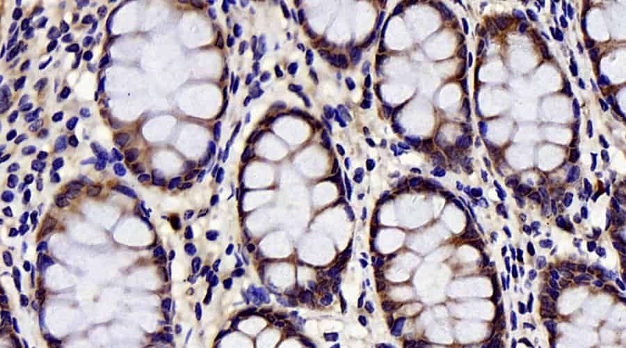Immunohistochemistry analysis of paraffin-embedded human colon using CHOP Polyclonal Antibody at dilution of 1:300.