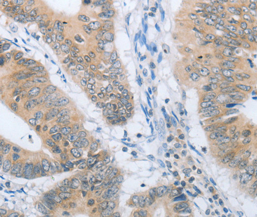 Immunohistochemistry of paraffin-embedded Human colon cancer tissue using CHRNA10 Polyclonal Antibody at dilution 1:50