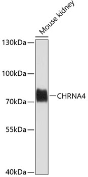 Western blot analysis of extracts of Mouse kidney using CHRNA4 Polyclonal Antibody at dilution of 1:1000.