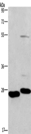 Western Blot analysis of Mouse intestinum tenue and heart tissue using CIDEC Polyclonal Antibody at dilution of 1:551