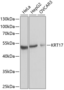 Western blot analysis of extracts of various cell lines using KRT17 Polyclonal Antibody at dilution of 1:1000.