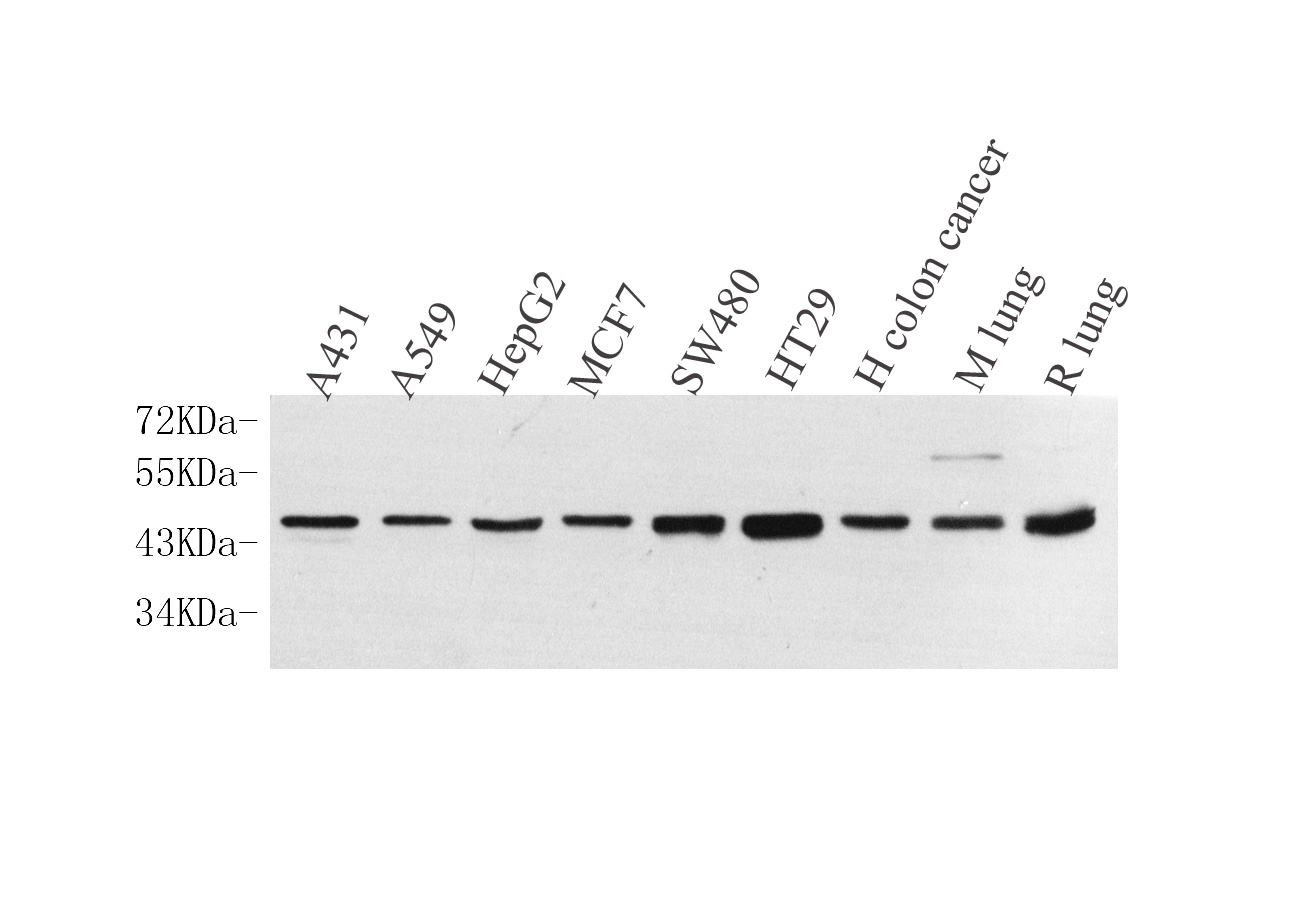 Western Blot analysis of various samples using CK-19 Polyclonal Antibody at dilution of 1:1000.
