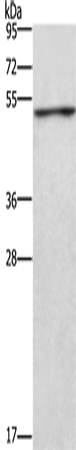 Western Blot analysis of Jurkat cell using CKMT2 Polyclonal Antibody at dilution of 1:700