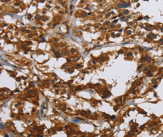 Immunohistochemistry of paraffin-embedded Human thyroid cancer tissue using Claudin 2 Polyclonal Antibody at dilution 1:30