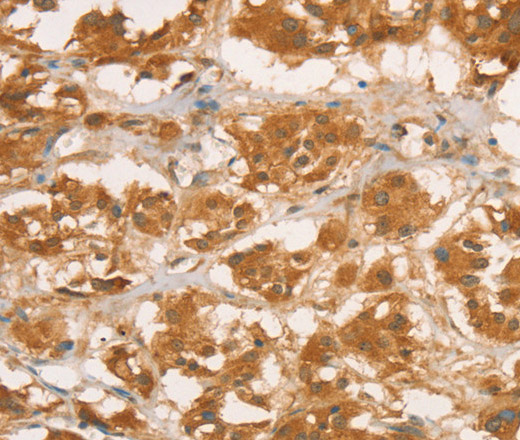 Immunohistochemistry of paraffin-embedded Human thyroid cancer tissue using CPB1 Polyclonal Antibody at dilution of 1:50