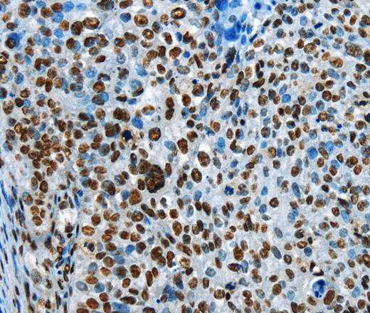 Immunohistochemistry of paraffin-embedded Human cervical cancer tissue using CREB1 Polyclonal Antibody at dilution 1:30