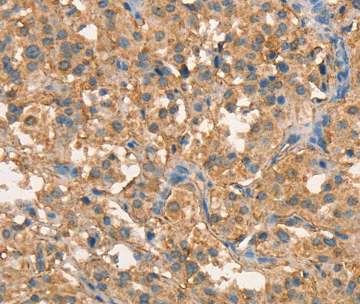Immunohistochemistry of paraffin-embedded Human thyroid cancer tissue using CRELD1 Polyclonal Antibody at dilution 1:40