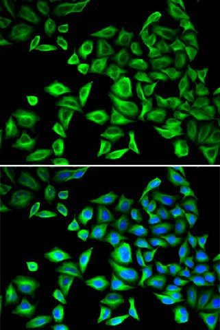 Immunofluorescence analysis of HeLa cells using CRP Polyclonal Antibody