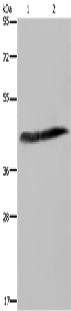 Western Blot analysis of Human placenta tissue and HepG2 cell using CD116 Polyclonal Antibody at dilution of 1:250