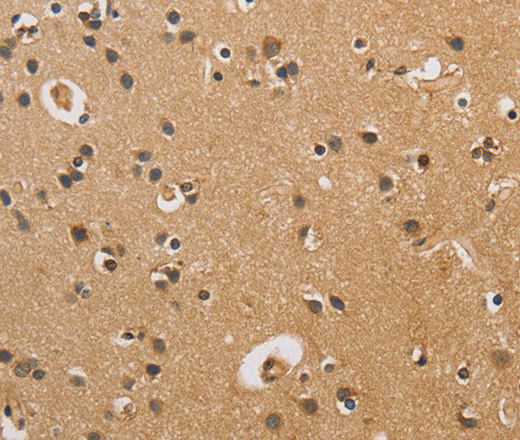 Immunohistochemistry of paraffin-embedded Human brain tissue using CST6 Polyclonal Antibody at dilution 1:70
