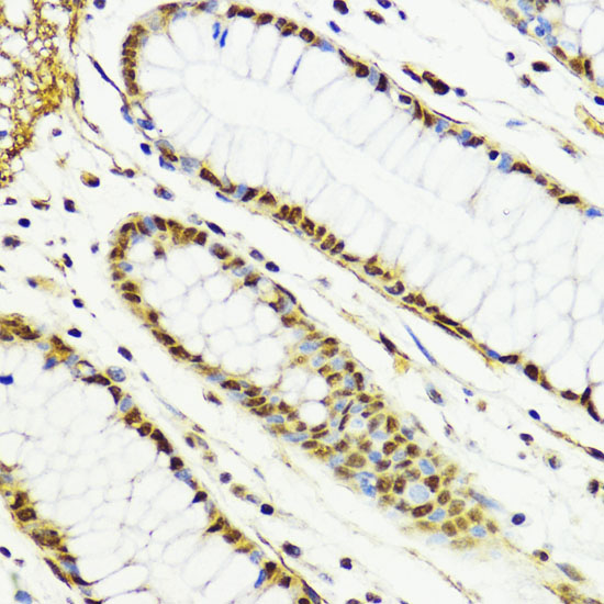 Immunohistochemistry of paraffin-embedded Human colon using CTCF Polyclonal Antibody at dilution of 1:100 (40x lens).