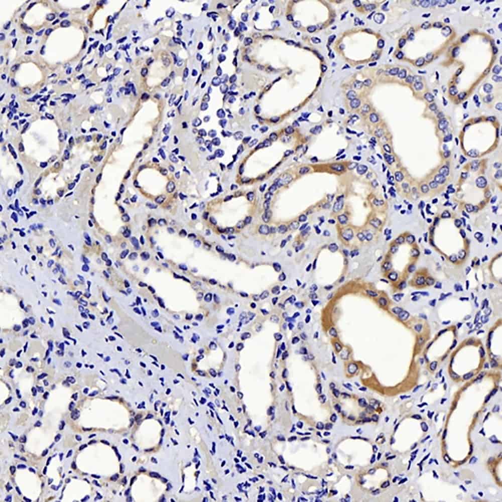 Immunohistochemistry analysis of paraffin-embedded human kidney using CTGF Polyclonal Antibody at dilution of 1:100.