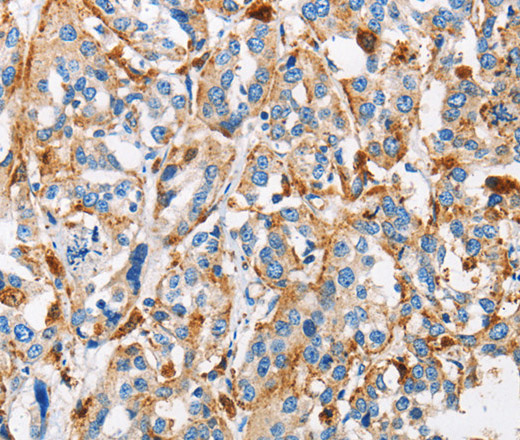 Immunohistochemistry of paraffin-embedded Human esophagus cancer tissue using Cathepsin L Polyclonal Antibody at dilution 1:50