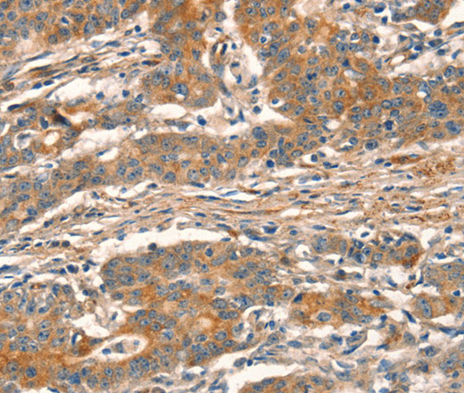 Immunohistochemistry of paraffin-embedded Human gasrtic cancer tissue using CUEDC2 Polyclonal Antibody at dilution 1:30