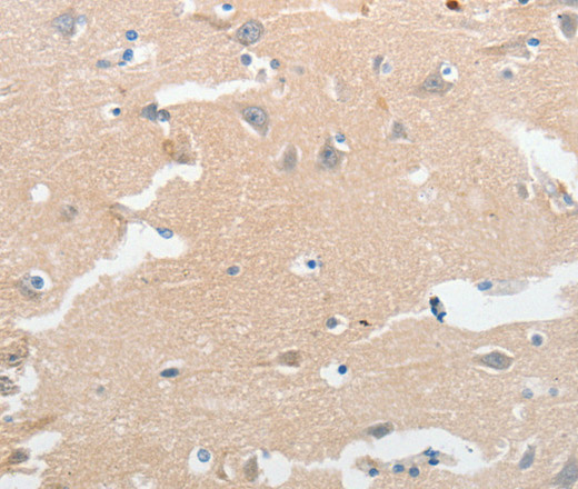 Immunohistochemistry of paraffin-embedded Human brain tissue using LCN2 Polyclonal Antibody at dilution 1:50