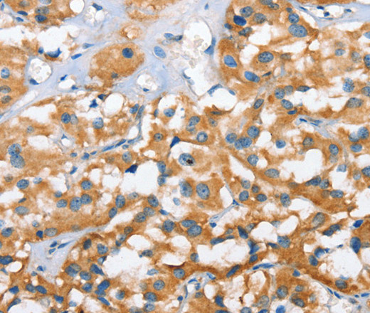 Immunohistochemistry of paraffin-embedded Human thyroid cancer tissue using CXCL14 Polyclonal Antibody at dilution 1:40