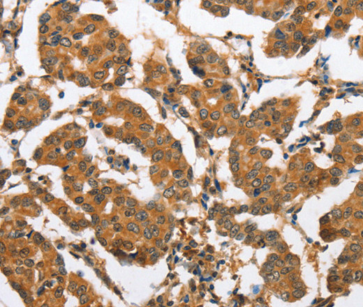 Immunohistochemistry of paraffin-embedded Human breast cancer tissue using CXCL14 Polyclonal Antibody at dilution 1:60