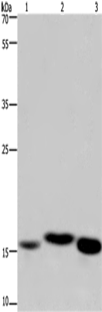 Western Blot analysis of Mouse kidney, Human fetal liver and Mouse liver tissue using Cytochrome b5 Polyclonal Antibody at dilution of 1:250