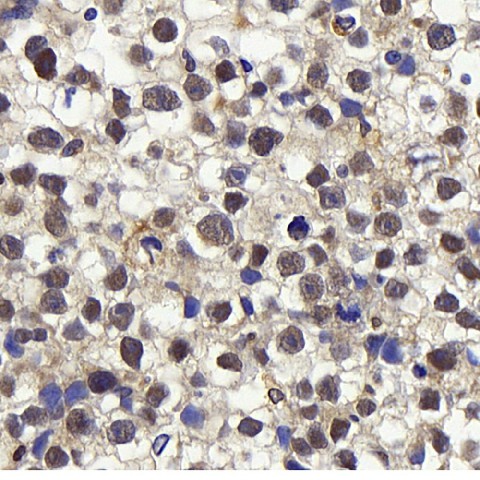 Immunohistochemistry analysis of paraffin-embedded human orchidoncus using Cyclin E1 Polyclonal Antibody at dilution of 1:400.
