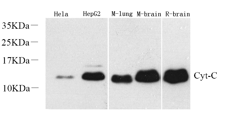 Western Blot analysis of various samples using CYCS Polyclonal Antibody at dilution of 1:1000.