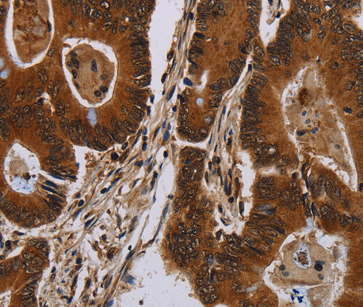 Immunohistochemistry of paraffin-embedded Human colon cancer tissue using DCAF6 Polyclonal Antibody at dilution 1:50