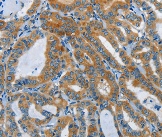 Immunohistochemistry of paraffin-embedded Human thyroid cancer tissue using DDAH1 Polyclonal Antibody at dilution 1:55