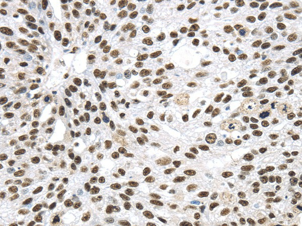 Immunohistochemistry of paraffin-embedded Human breast cancer using DDX39B Polyclonal Antibody at dilution of 1/40