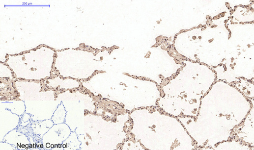 Immunohistochemistry of paraffin-embedded Human lung tissue using Desmin Monoclonal Antibody at dilution of 1:200.