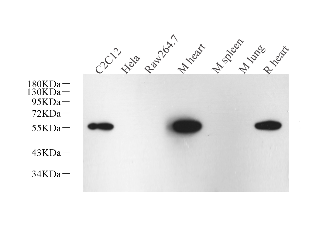 Western Blot analysis of various samples using Desmin Monoclonal Antibody at dilution of 1:1000.