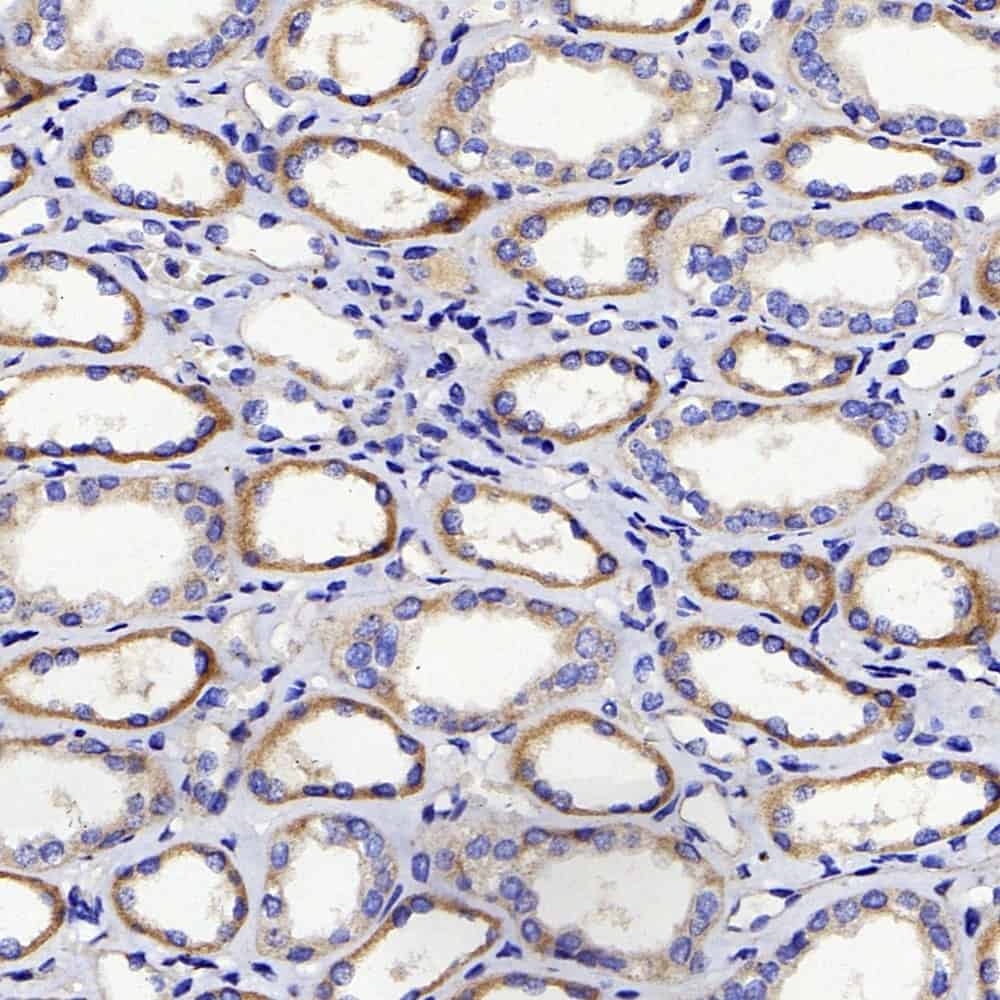 Immunohistochemistry analysis of paraffin-embedded human kidney using DICER1 Polyclonal Antibody at dilution of 1:400.