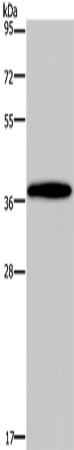 Western Blot analysis of Mouse brain tissue using DLX4 Polyclonal Antibody at dilution of 1:900