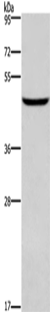 Western Blot analysis of Human testis tissue using DMRT3 Polyclonal Antibody at dilution of 1:550