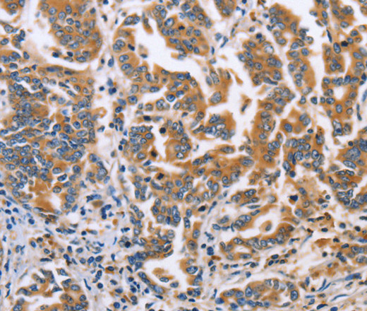 Immunohistochemistry of paraffin-embedded Human gasrtic cancer tissue using DOK4 Polyclonal Antibody at dilution 1:60