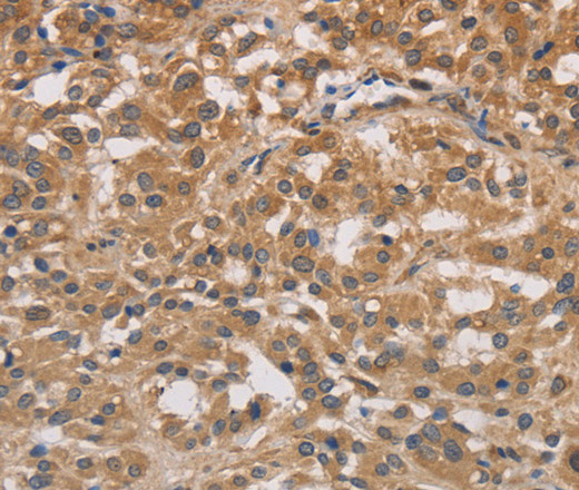Immunohistochemistry of paraffin-embedded Human thyroid cancer tissue using DSTN Polyclonal Antibody at dilution 1:30