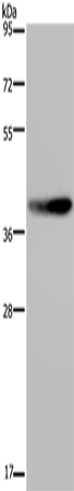 Western Blot analysis of RAW264.7 cell using MKP-2 Polyclonal Antibody at dilution of 1:600